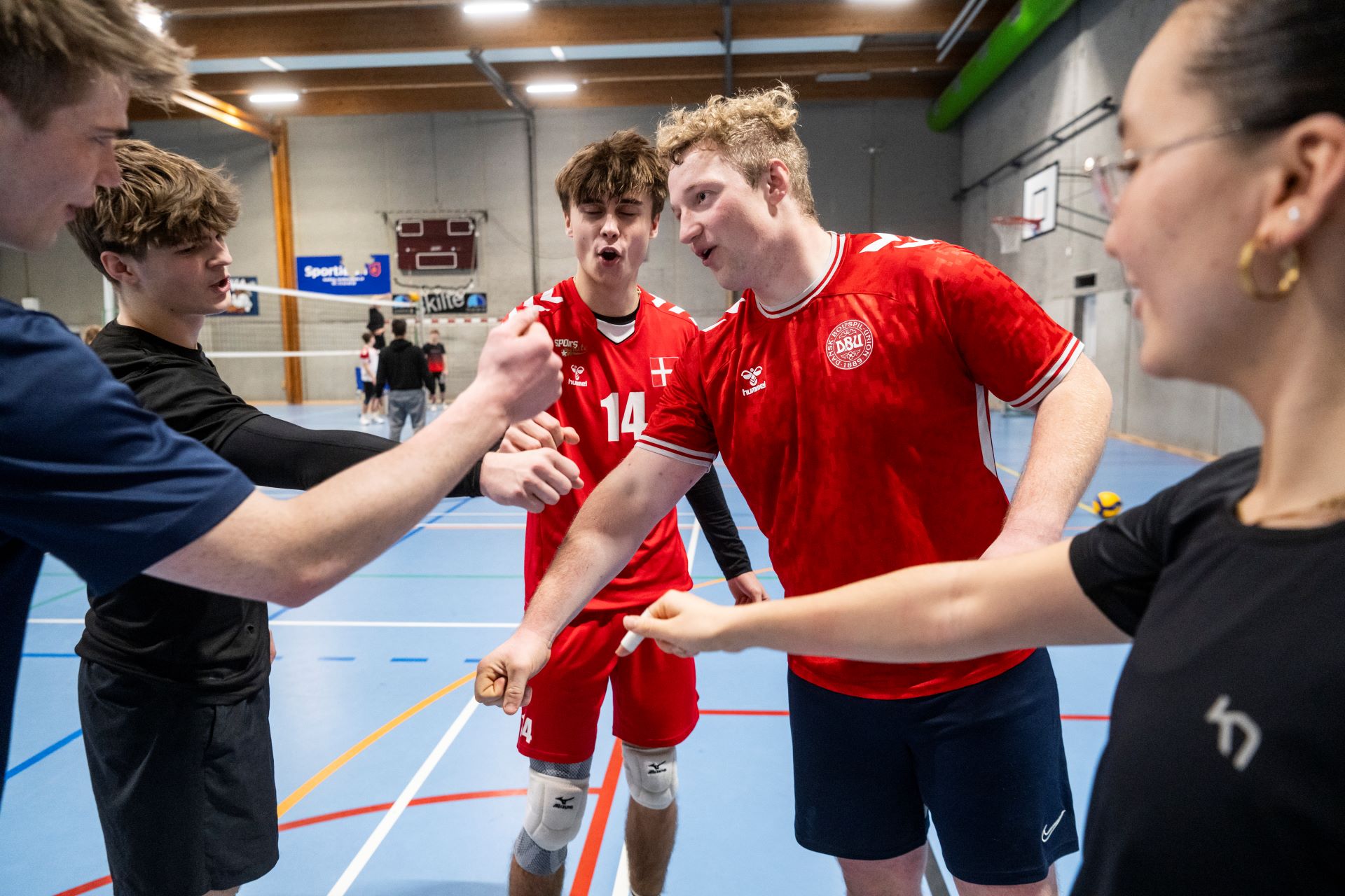 Kristoffer Aabling, Lukas Grandgaard Nielsen og Mikkel Hussmann fra ungeudvalget sammen med Valdemar Hvolby Bennedsen til fællestræning, specielt for de ældste ungdomsspillere. Foto: Palle Skov